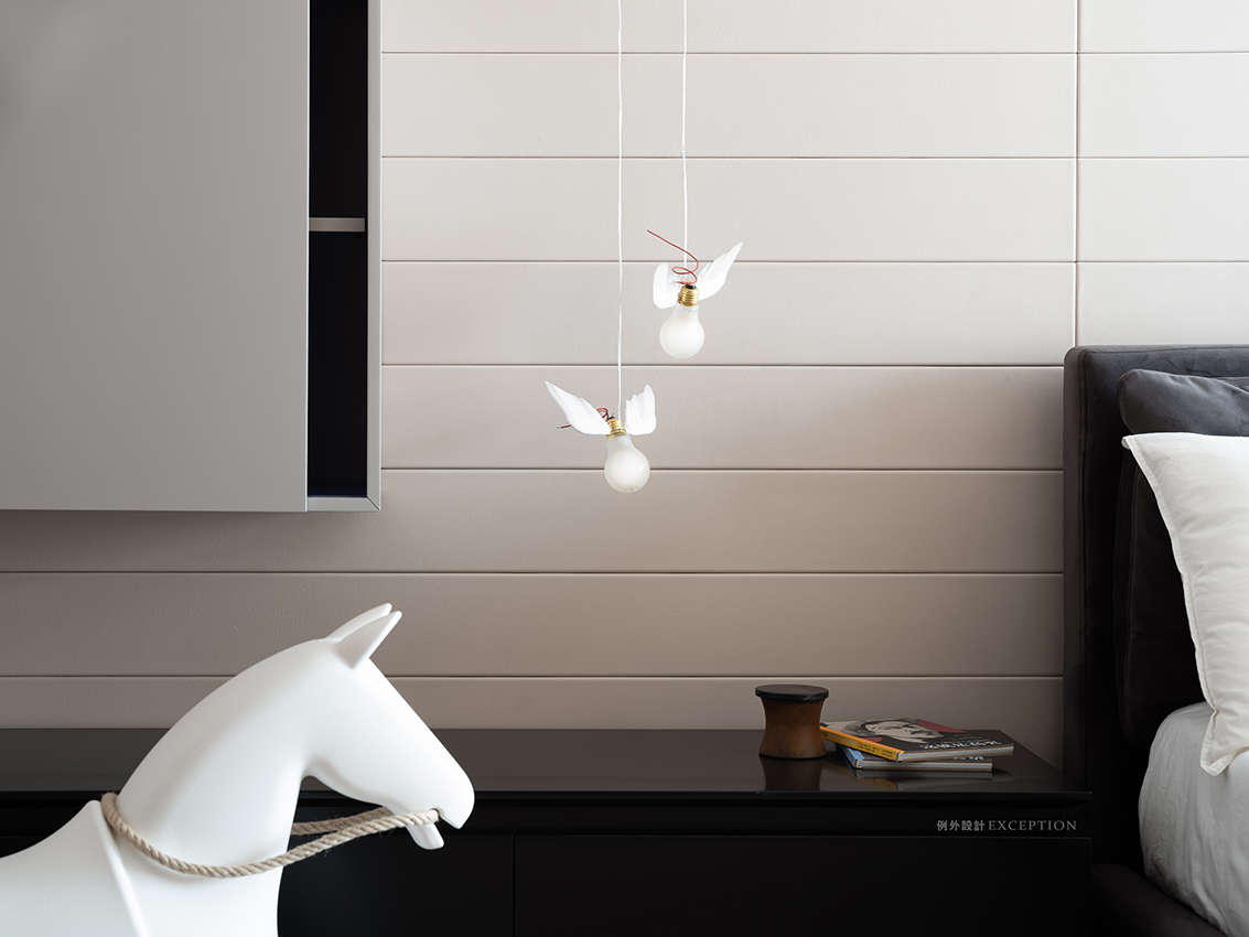 对艺术的向往不分年龄,无关时月。长辈房以木色塑造平实质朴的意境,飞鸟灯玲珑巧致,与燕尾元素地毯一起赋予空间祥和美满的生活愿景。当悠扬的曲调从嵌入式音箱里缓缓而出,一切都恰到好处,最好的状态便是随心所愿地坠入对生活的本真期待,慢慢去感悟。