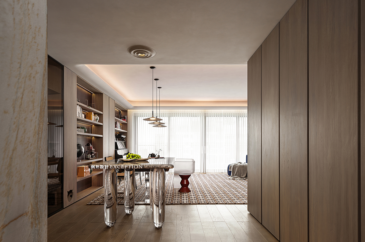 在这个家的打造中,屋主给予了鸿艺源设计百分百的信任,他们希望家是温馨而精致的,可以色彩斑斓,也可以包容各种不同的材质。设计中我们从屋主的气质和爱好习惯出发,以温暖的木色打底,点缀灵动的色彩,让家更具场景感,让每个家人都能收获相应的情绪价值。