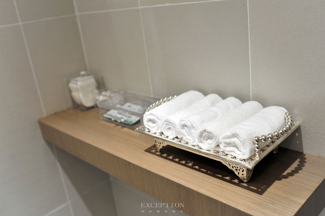 镂空毛巾架细致讨巧,精美的细节凸显出产后修复中心从一点一滴照顾妈妈们的感受,也传达出高雅的品味与格调。