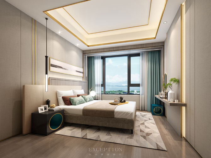 所谓的对称平衡都是一种相对的状态,床头的双层交叉设计在视觉上模糊了传统意义上的中心点概念,开阔了入门的空间。以点、线、面、圆等的恰到好处的融入,构建出虚实转化的哲学层面的居住空间。