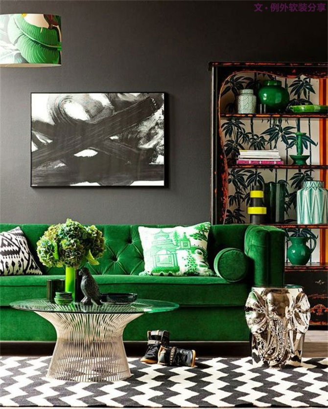 這個空間的綠白經典搭配,讓人過目不忘。綠色在室內設計中大行其道,只要家居搭配得當,處處都是驚喜!