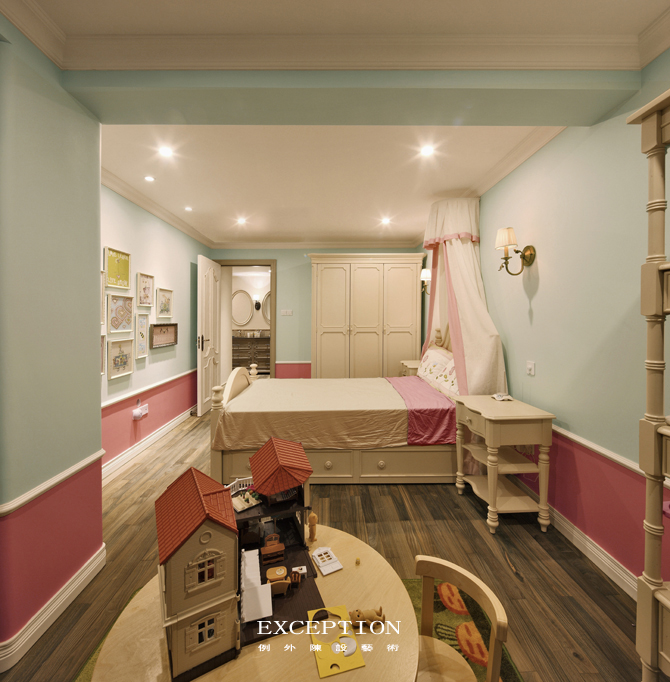 男孩天生好動,女孩相對文靜,男孩房的顏色普遍為藍色、綠色等跳躍性色彩,而女孩房大多被設計為粉色、黃色、淺紫色等淡雅柔美的顏色,軟裝搭配的家具款式也多為田園夢幻類型。