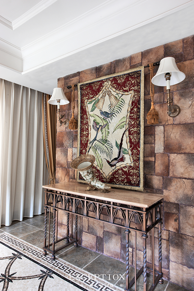 其次還可作為參照的一個元素是燈光,依據居室的光線狀況調整掛畫位置。由于油畫極容易反光,如果直接面對正的光源,會影響畫面的角度。為了達到較好的視覺效果,采用側前上方光線,盡量做到懸掛處的光源與畫面上的光源一致。