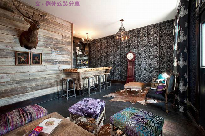這間公寓位于美國俄克拉何馬州一個縣里,這里擁有美國大的印地安原住民人口,屋主Miranda Lambert是告訴設計師Phara Queen Design希望空間可以體現出獨特的氣質,甚至不拒絕一些濃艷的裝飾效果。設計師結合當地文化特色來處理軟裝設計,用濃艷的色彩拼接出華麗的風格,泛著絲光的絨布、玲瓏的枝形吊燈曼妙生輝。與裸露的磚墻、刻意做舊的木地板蔓延出濃厚的歷史感和質樸氣息,鮮明的反差刺激視覺神經。