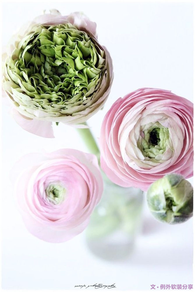 人們對于牡丹的喜愛,自古有之。牡丹是百花之王,象征著高貴、繁榮和幸福。然而牡丹尊為國色,嬌嫩金貴,花期較短而且不易盆栽,尋常人家一般很難栽種,因此大部分人對它望而卻步。與牡丹外形十分相似的洋牡丹(又稱花毛茛)則很好的解決了這些問題。它因色彩豐富、容易養護而深得人心,是居家花藝的主要材料。