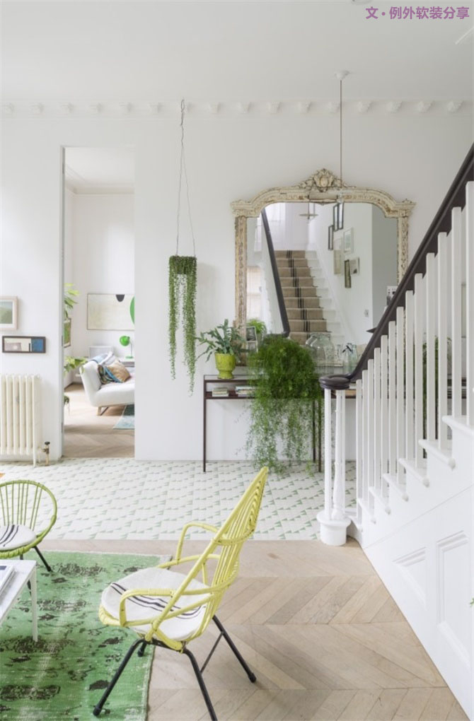 春留給人們深的印象莫過于萬物蘇醒、綠葉嫩芽,春暖花開。這套維多利亞風格住宅設計位于英國,室內設計師以白色為主色調,在家居搭配中加入了綠色家具、綠色盆栽,把春的氣息帶入了室內,讓家充滿自然味兒。