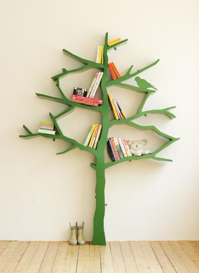 樹形書架無疑是文藝青年的心頭好,充滿自然氣息的寫意造型,書本就隨意安放在樹杈間,迎著下午三點半的陽光,享受現世安穩的日子。簡單的辦法,你甚至可以把壁畫與書架結合起來,兩塊木板固定在墻面上就大功告成了。