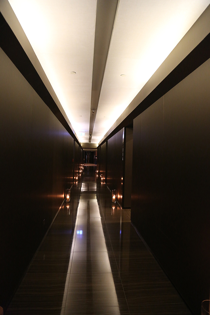 過道的設計是源於T台設計,狹長閃亮,盡頭有一面鏡子,走在上面仿佛每個人都成了model。暗藏式的房門保持了其整潔,但是個人覺得有點不太好用,如果沒有標誌真的會連門也找不到的。